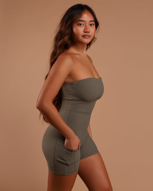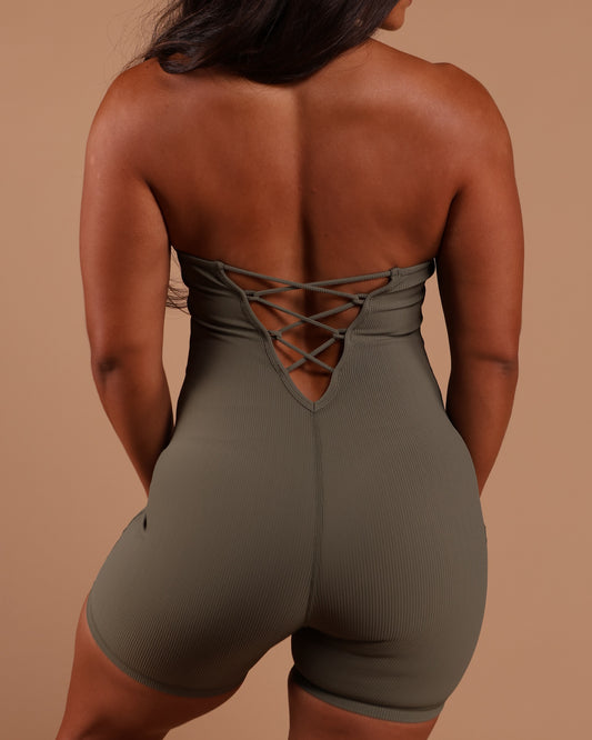 Sweet Heart Strapless Jumpsuit in Ribbed Olive