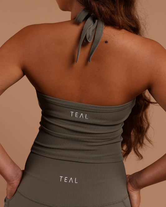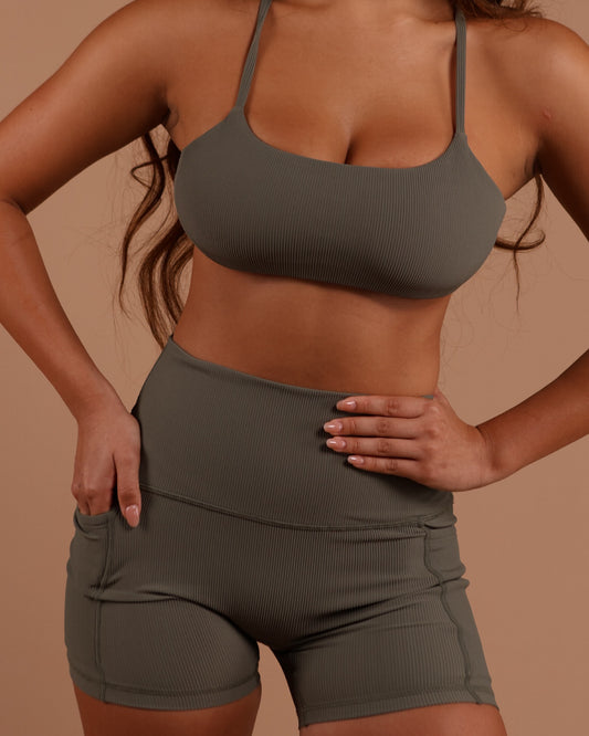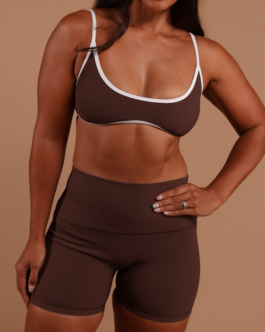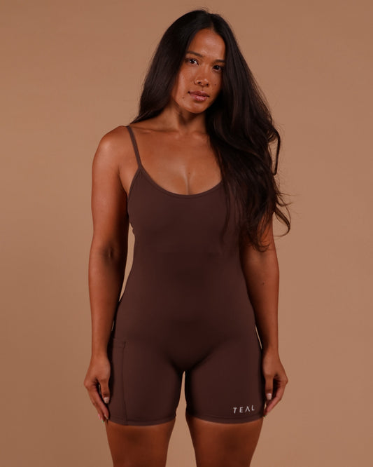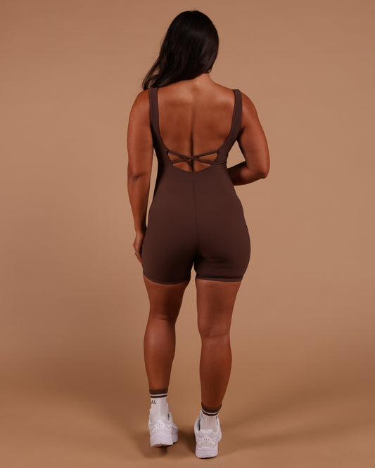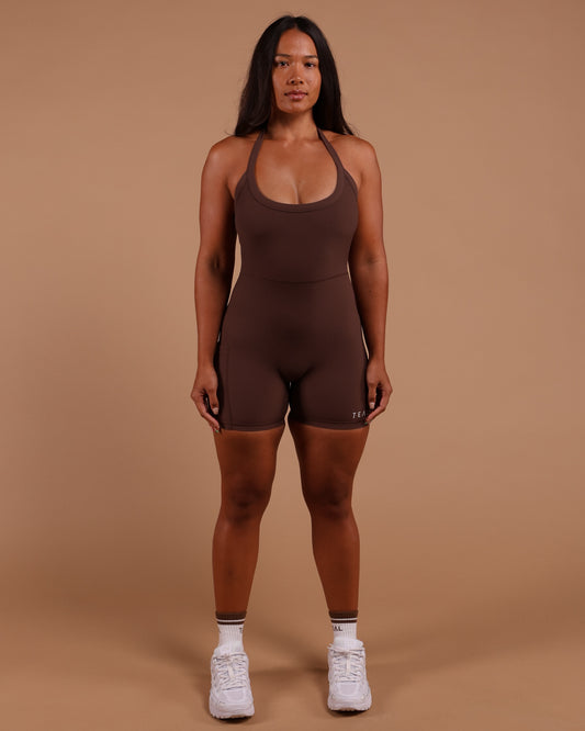 NEW Azure V-Back Jumpsuit in Ribbed Mocha