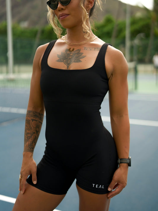 UPDATED! Azure V-Back Jumpsuit in Ribbed Black