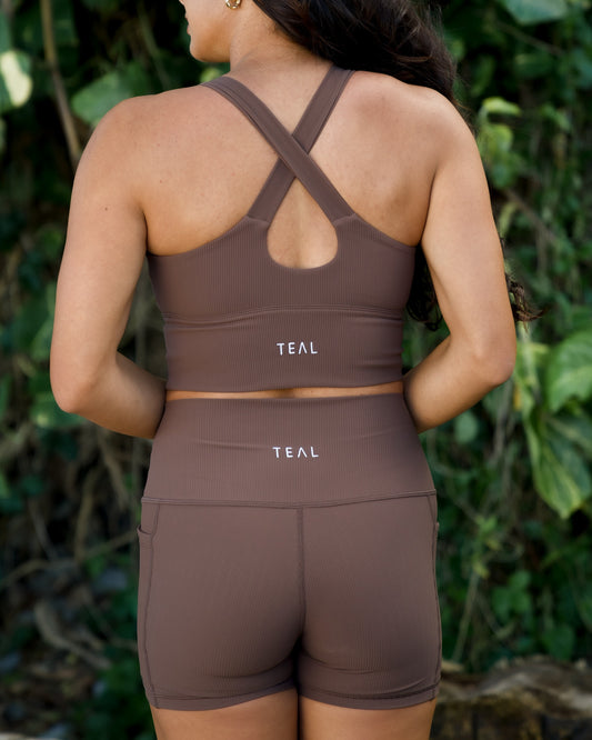 Essential 4.5" Biker Short in Ribbed Mauve Pink