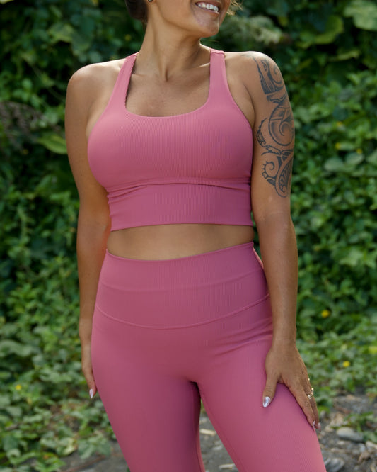 Long Kayla Jumpsuit in Ribbed Mauve Pink