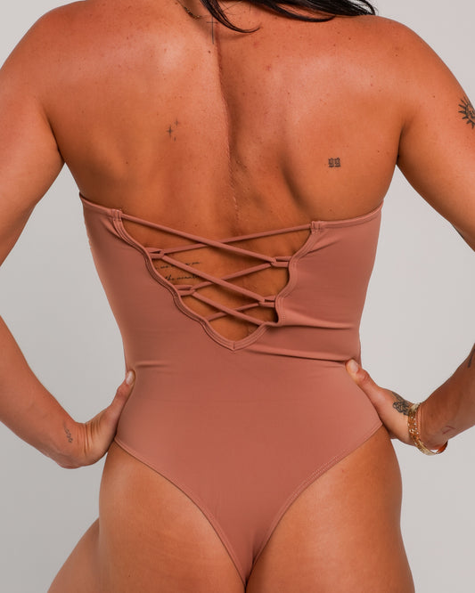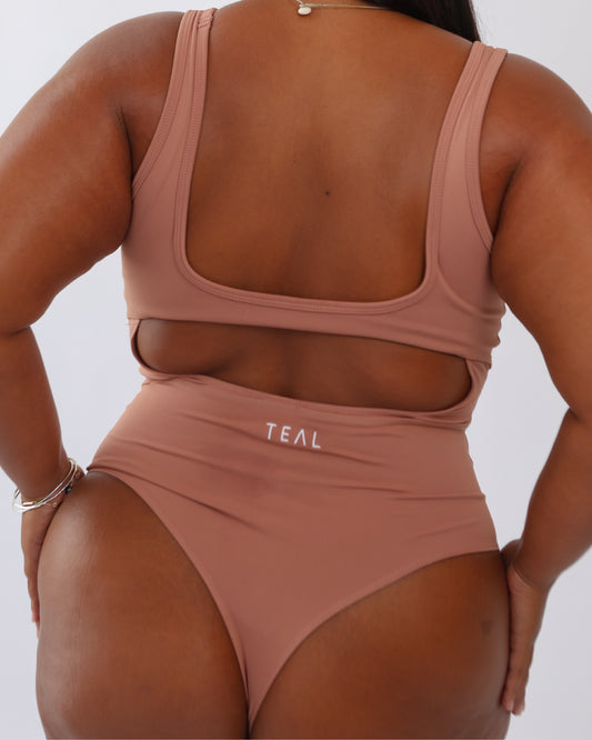 Olina Open Back Jumpsuit in Ribbed Mauve Pink