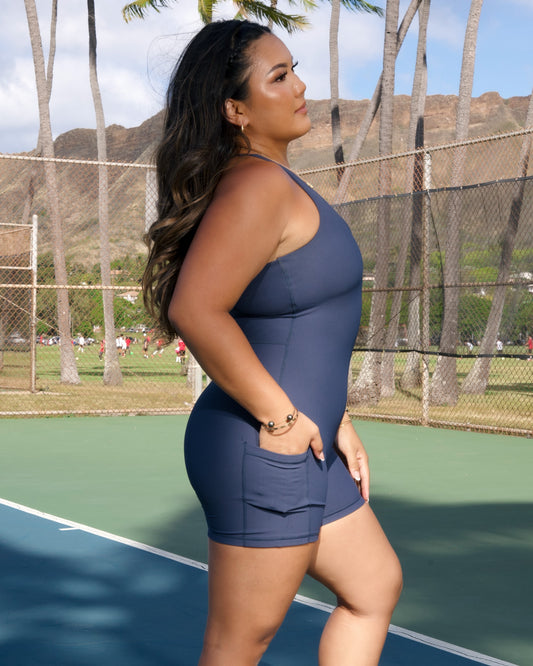 Azure V-Back Jumpsuit in Ribbed Pacifica