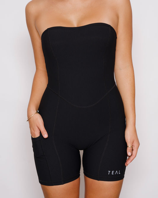 • Sweet Heart Strapless Jumpsuit in Ribbed Black