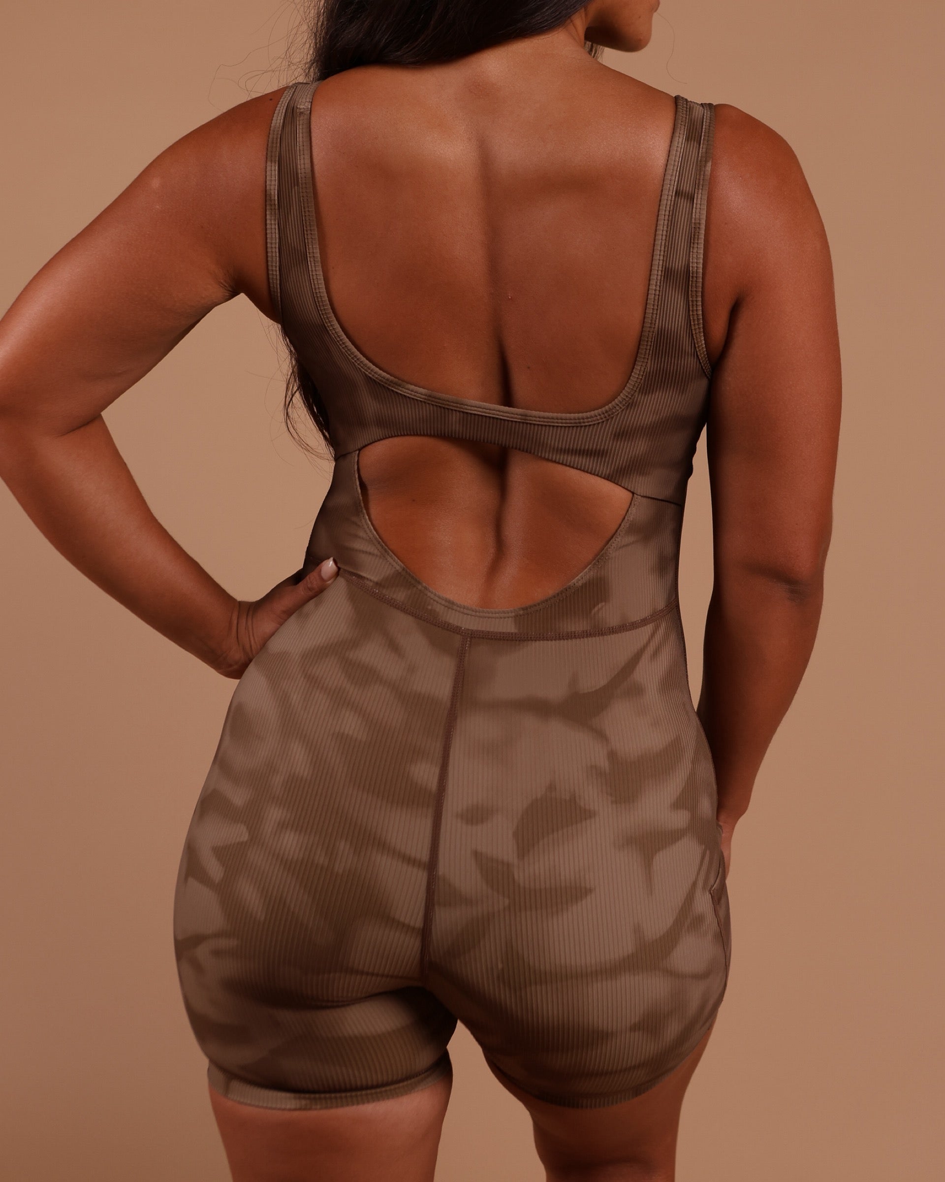 The Aura Jumpsuit is designed with a front under boob detail, scoop neck and cut out detail on the back. This jumpsuit has removable cup padding, 4.5” inseam and flush side pocket on the right leg. This micro ribbed is a soft material that is meant to shape to your body.