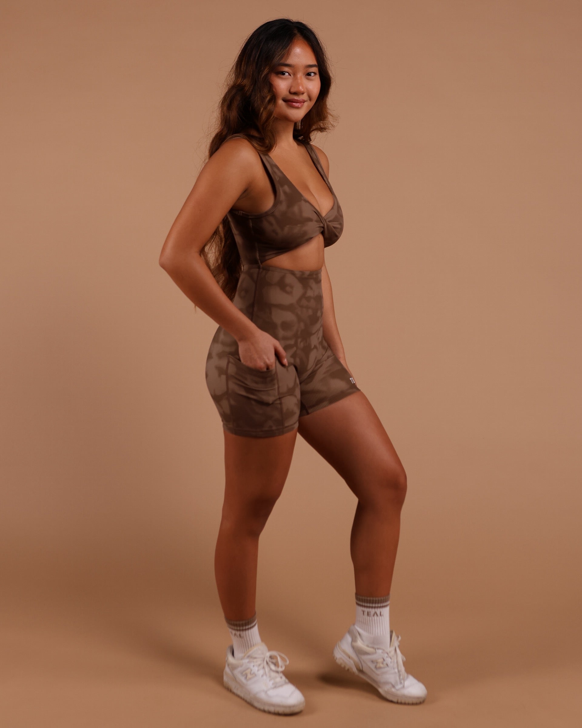 The Jani Jumpsuit is designed with a twist front detail, scoop back, thick straps and a single pocket. This jumpsuit has removable cup padding, 4.5" inseam and embroidered logo on the left leg.
