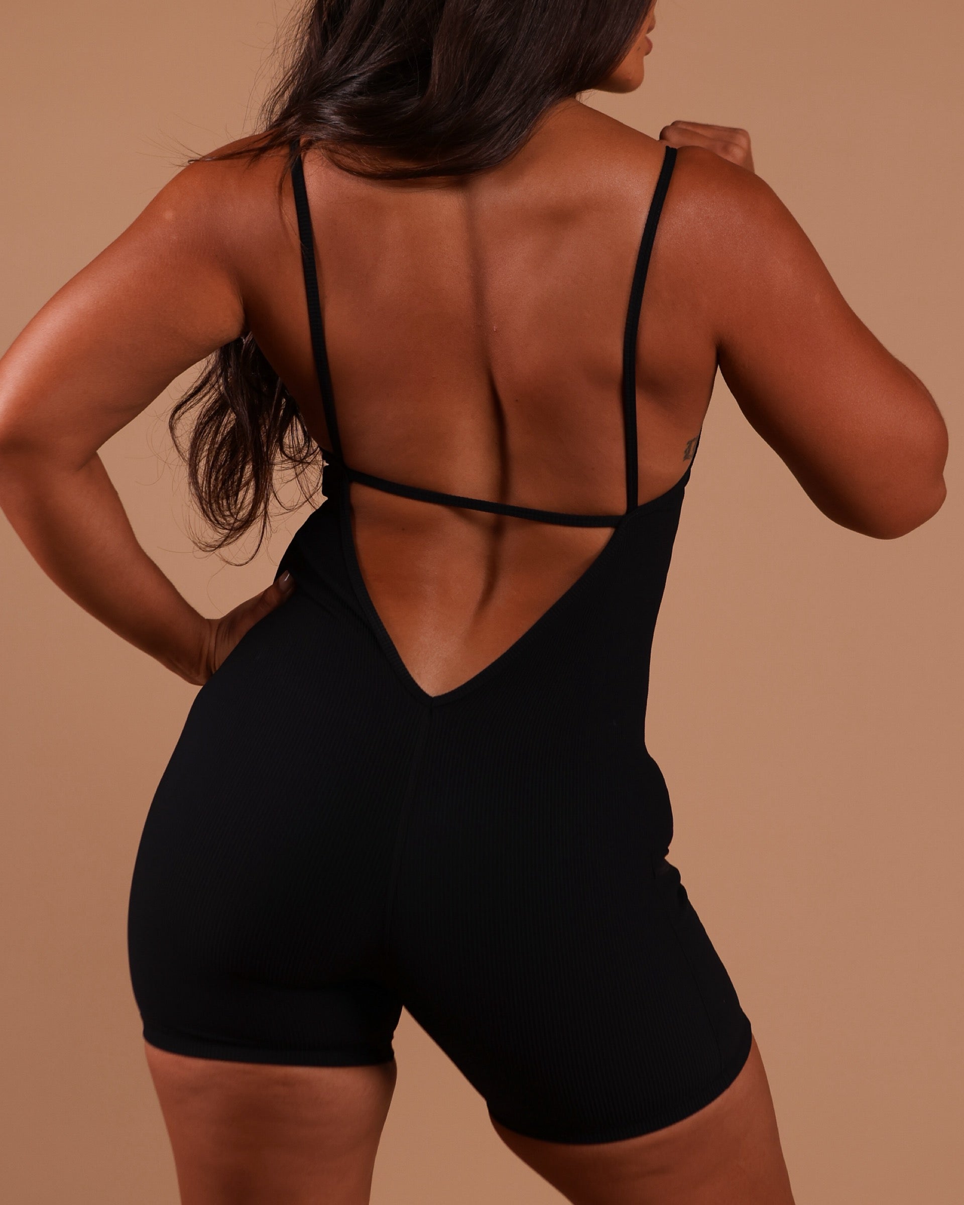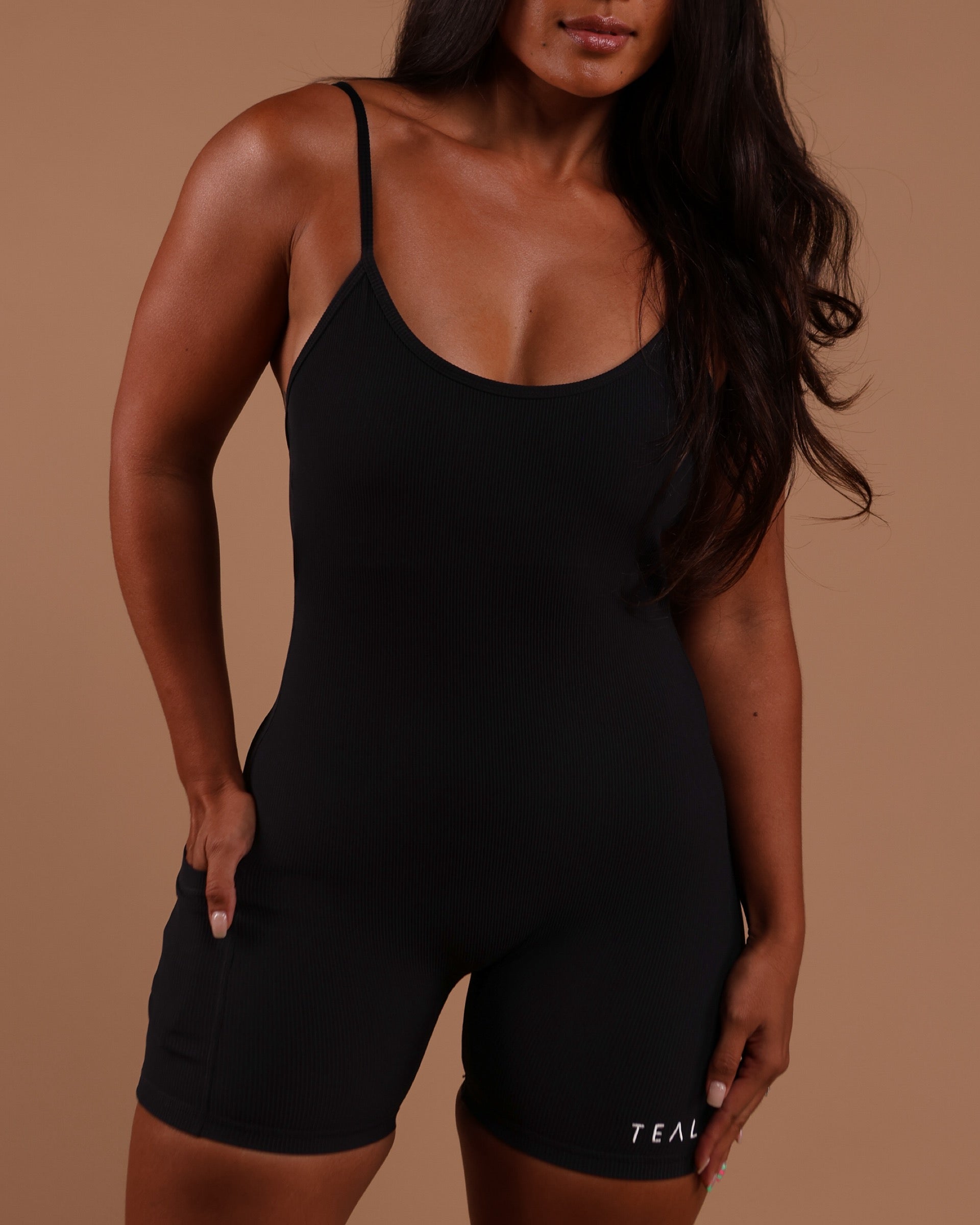 NEW Azure V-Back Jumpsuit in Ribbed Black