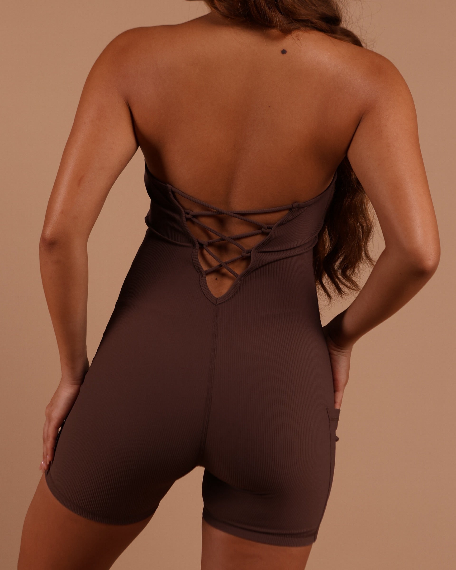 Sweet Heart Strapless Jumpsuit in Ribbed Mocha