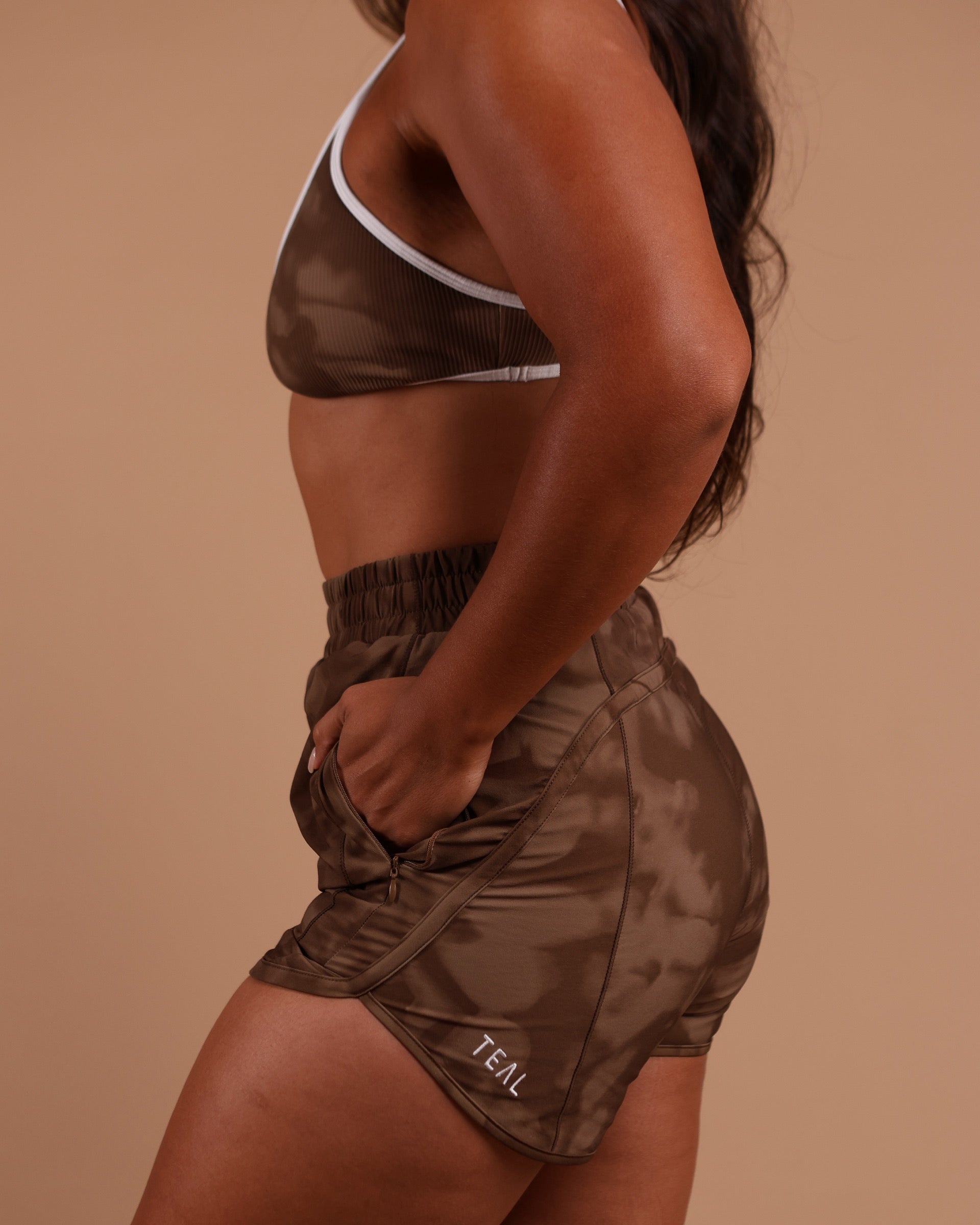 Our Hybrid Running Short is designed with an thicker high waisted elastic band, 5” inseam and double pockets. Perfect for working out or going to the beach! Our logo is embroidered in white on bottom left. This exact design was created to be on the fitted side and does not come with an interior liner.
